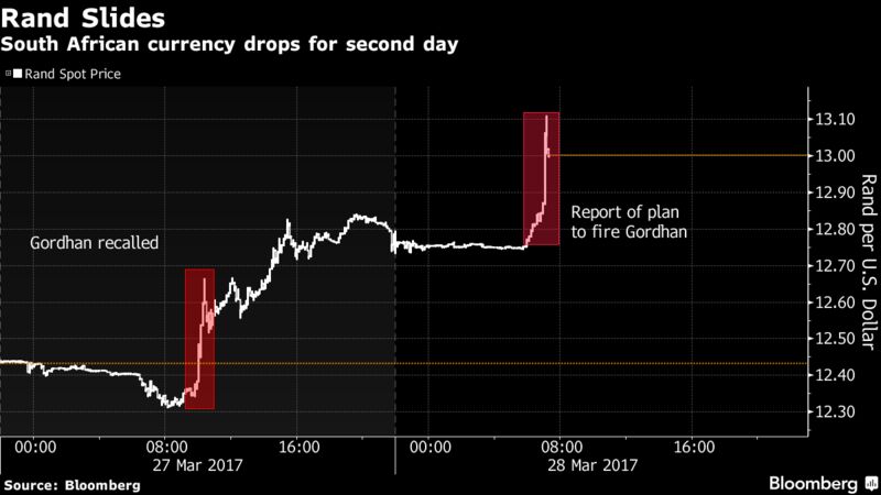 South African President Jacob Zuma told senior leaders of the South African Communist Party that he plans to fire Finance Minister Pravin Gordhan, according to three people with knowledge of the matter. The rand plummeted.